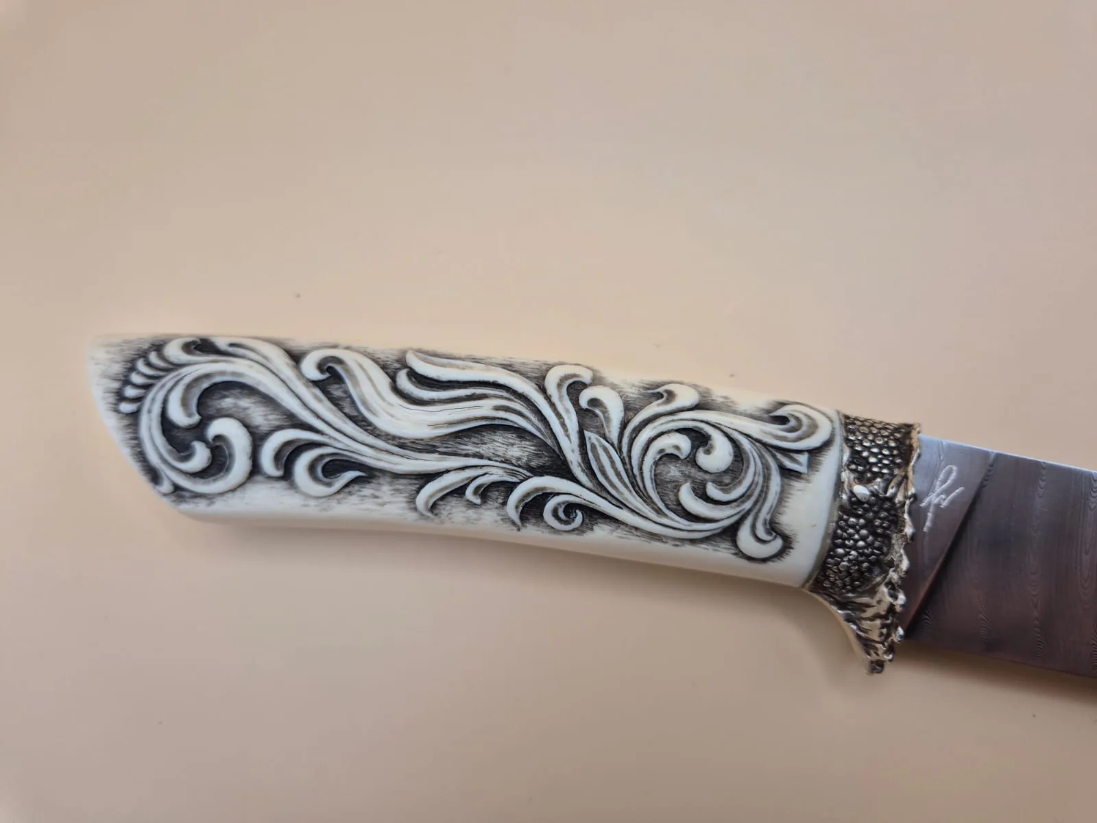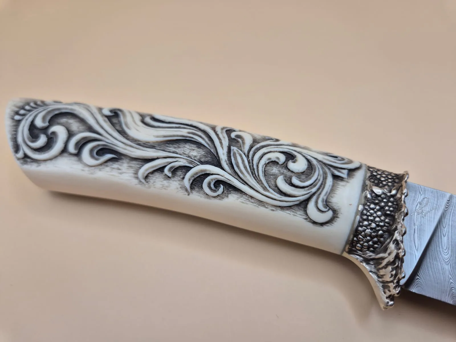 - Ivory hand engraved, silver custom made bolster